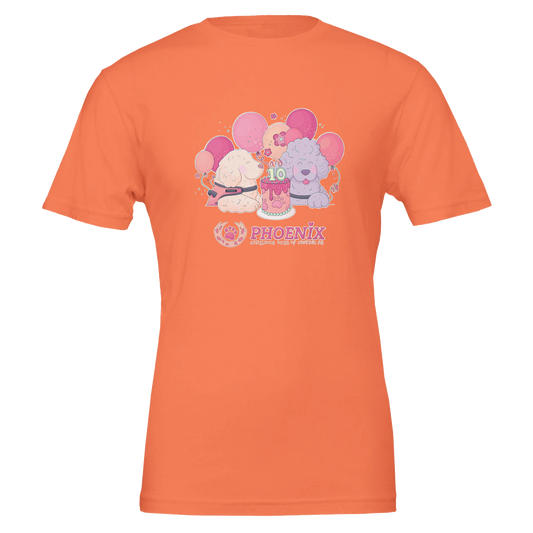 This is a custom design from Nandi Appleby for Phoenix Assistance Dog's 10th Birthday, June 15, 2019. This design features PAD Terp the Golden Retriever and Olympia the Standard Poodle with a 10th birthday cake.